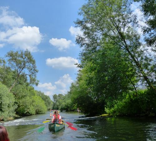 Vor Ort erfolgt die Einweisung in Paddeltechnik und Verhaltensweisen auf dem Fluss.