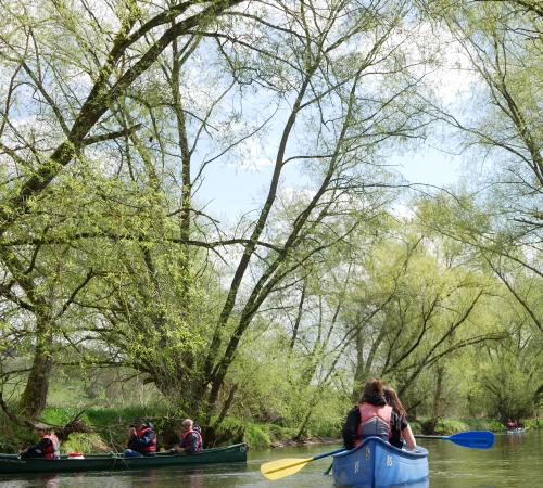 Nach einer anfängergerechten Einweisung paddeln Sie los – vorbei am Weserstein, der den Ursprung der Weser markiert. Keine Sorge: Nach einigen Paddelschlägen haben auch Anfänger den Bogen in der Regel schnell raus und genießen den Tag auf dem Wasser.