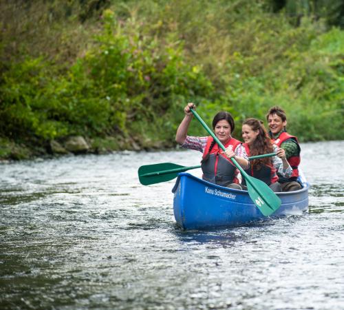 Nach einer anfängergerechten Einweisung paddeln Sie los – vorbei am Weserstein, der den Ursprung der Weser markiert. Keine Sorge: Nach einigen Paddelschlägen haben auch Anfänger den Bogen in der Regel schnell raus und genießen den Tag auf dem Wasser.